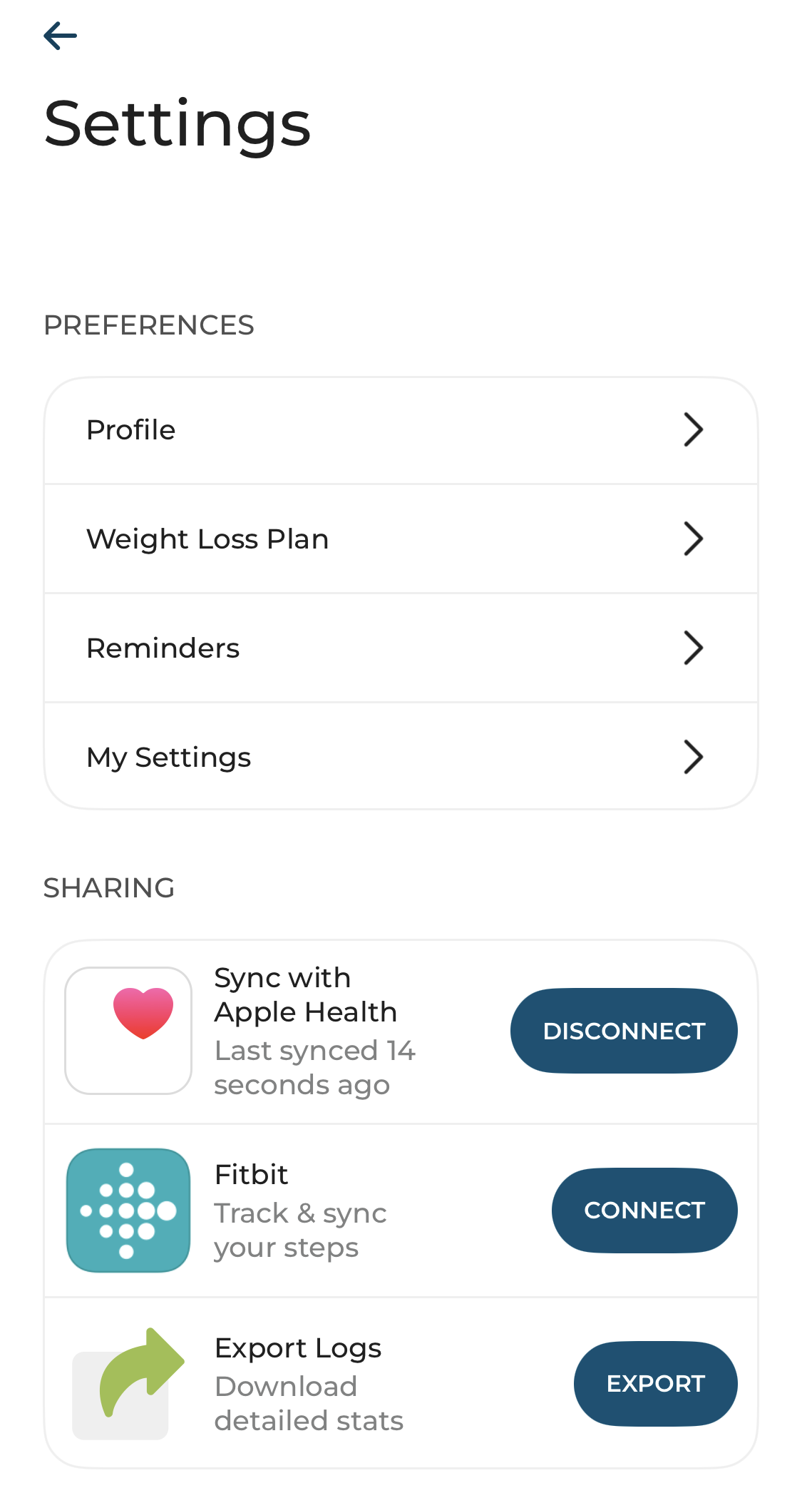 - Come back into the SETTINGS screen in Healthi and tap CONNECT.
