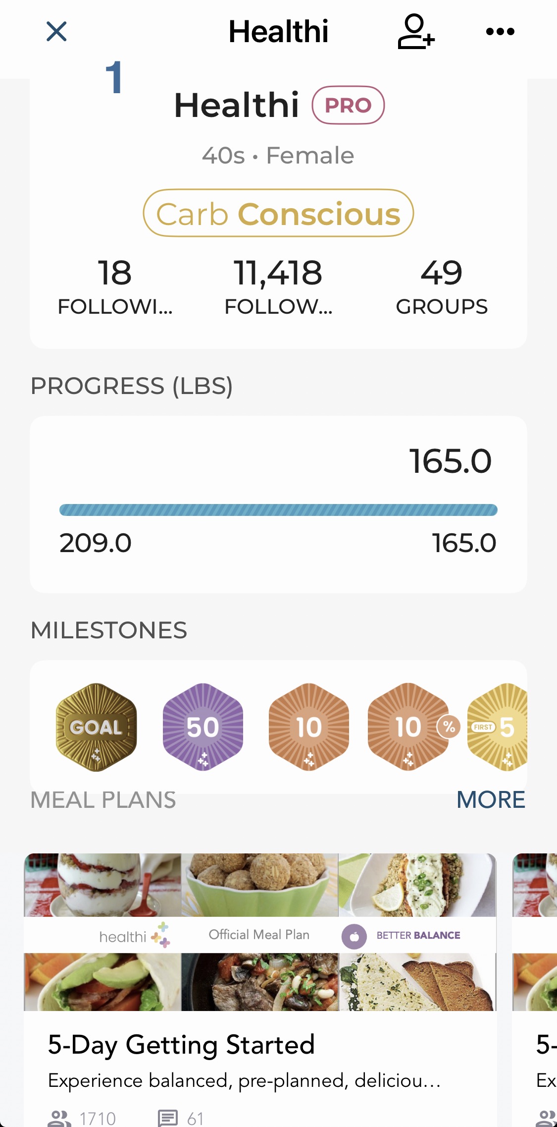 1/ PROFILE - Tapping the username on a meal plan will take you to the Profile of the creator. This will show all the meal plans they have created, you will also be able to 'Follow' them in the Community.